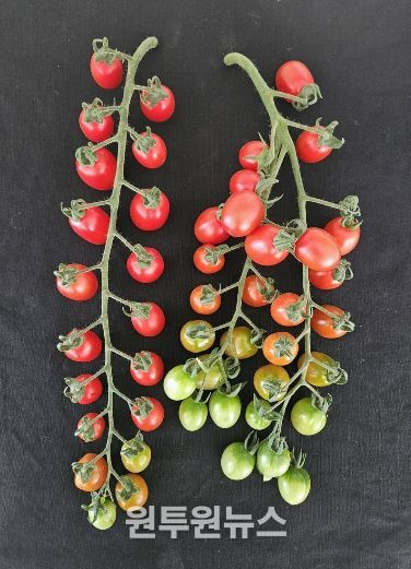 (원투원뉴스) 충남도 농업기술원은 자체 개발한 대추형 방울토마토 신품종 ‘나이스허니’와 ‘나이스맥스’를 국립종자원에 출원했다고 5일 밝혔다.