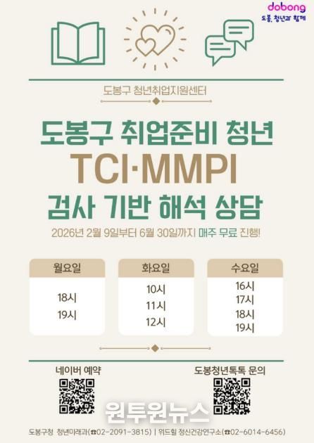 (원투원뉴스) 서울 도봉구가 도봉구 거주 취업 준비 청년을 대상으로 심리 지원 프로그램을 운영한다.