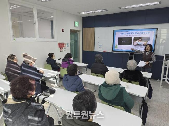 (원투원뉴스) 시흥시장곡종합사회복지관은 장곡교육자치회와 연계해 지난 1월 13일부터 2월 3일까지 총 4회기에 걸쳐 지역주민 환경교육 프로그램을 운영하고 주민 58명이 참여하며 교육을 성황리에 마무리했다.
