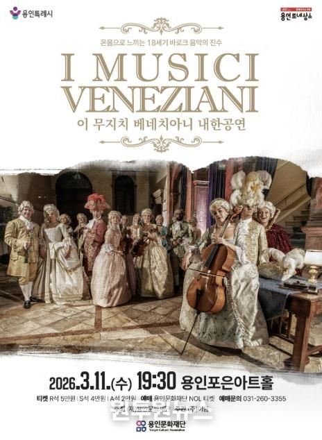 (원투원뉴스) 용인문화재단은 오는 3월 11일 용인포은아트홀에서 세계적인 바로크 앙상블 ‘이 무지치 베네치아니(I Musici Veneziani)’의 내한 공연을 개최한다.