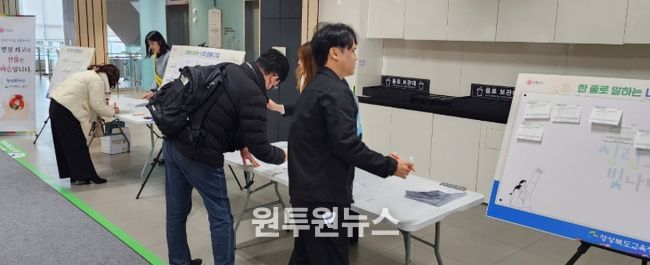 (원투원뉴스) 경북교육청은 설 명절을 앞두고 금품․선물 수수 관행을 예방하기 위해 3일부터 5일까지 3일간 추진한 ‘선물 안 주고․안 받기’ 청렴 다짐 한 줄 캠페인을 성황리에 마무리했다고 밝혔다.