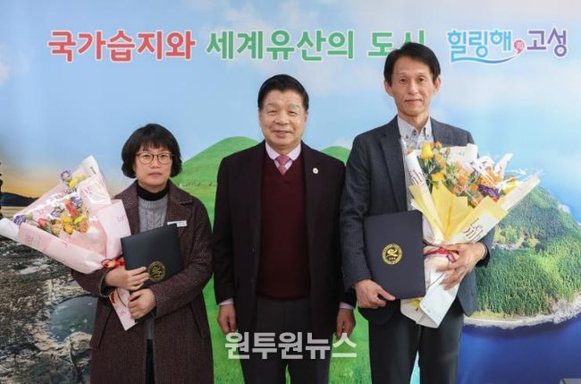 (원투원뉴스) 고성군은 2월 2일 군수실에서 고성박물관 및 고성탈박물관 리모델링 사업의 성공적인 추진에 기여한 학예사 2명에게 군수 표창을 수여했다.