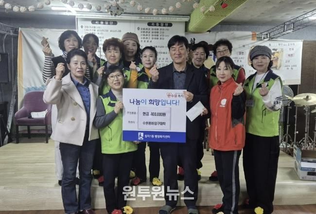 수원품바장구대학은 지난 4일, 2026년 설 명절을 맞아 지역 내 소외된 이웃들을 위해 40만원의 성금을 정자1동 행정복지센터에 기부했다.