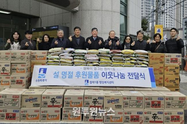 (원투원뉴스) 정자1동 행정복지센터는 2월 4일 설 명절을 앞두고 관내 단체, 기업, 개인 등에서 기탁한 성금과 물품을 어려운 이웃들에게 전달하는 ‘설 명절 이웃사랑 나눔 전달식’을 개최했다.