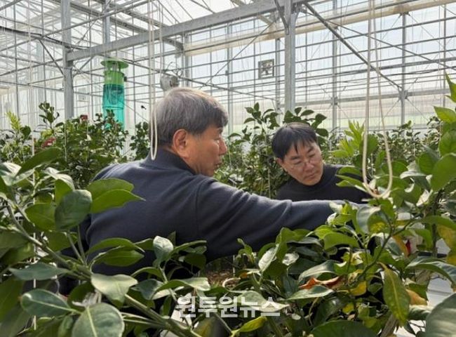 (원투원뉴스) 합천군농업기술센터는 4일 관내 만감류 재배 농가를 대상으로 센터 내 농업인교육장 및 아열대 실증시험포 온실에서 만감류(한라봉, 사라향) 재배기술 이론 및 실습(전정)교육을 실시했다.