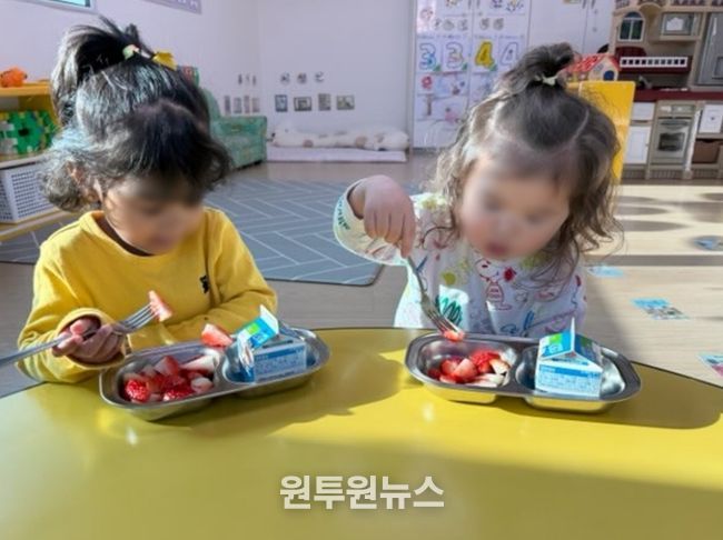 (원투원뉴스) 함안군은 2월 4일부터 관내 어린이집 27곳의 원아 600여 명에게 주 1회 1인당 110g 이상의 신선한 제철 과일을 무상으로 공급하는 ‘어린이집 과일간식 지원사업’을 추진하고 있다고 밝혔다.