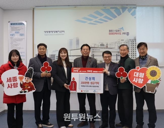 (원투원뉴스) 세종특별자치시 대평동지역사회보장협의체는 지역 건설회사 사모임 건성회(회장 이규문)가 5일 관내 어려운 이웃을 돕기 위해 성금 200만 원을 기탁했다고 밝혔다.