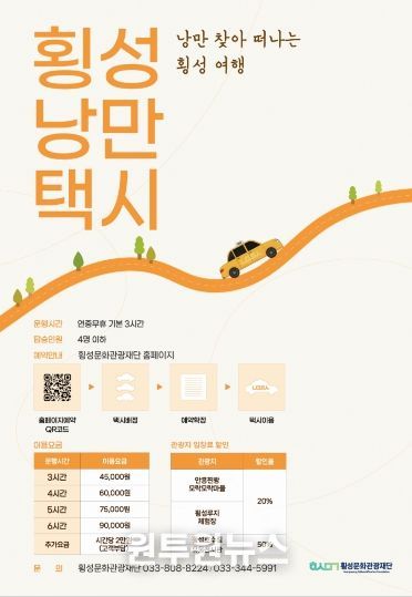 한편, 낭만택시 이용 방법과 상세한 할인 일정은 향후 횡성문화관광재단 누리집(홈페이지)을 통해 공지될 예정이다.