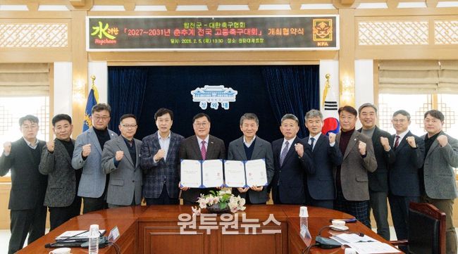 (원투원뉴스) 합천군은 5일 합천영상테마파크 청와대 세트장에서2027~2031년 춘·추계 전국 고등축구대회 개최 협약식을 가졌다고 밝혔다.