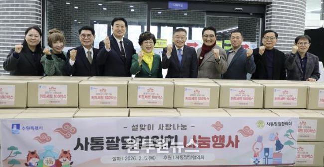 (원투원뉴스) 사통팔달협의회는 지난 5일, 민족 대명절인 설을 앞두고 관내 어려운 이웃을 위한 ‘설맞이 사랑나눔 키트’ 100박스를 수원시 팔달구에 전달했다고 밝혔다.