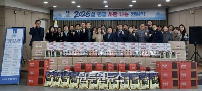 (원투원뉴스) 수원시 팔달구 화서1동은 지난 5일, 설 명절을 맞아 지역사회 이웃들에게 따뜻한 사랑을 전하는 '설 명절 사랑 나눔 전달식'을 진행했다.