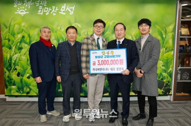(원투원뉴스) 보성군은 6일 가나이엔지 정광래 대표가 고향 발전을 응원하는 뜻으로 고향사랑기부금 300만 원을 기부했다고 밝혔다.