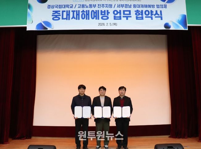 (원투원뉴스) 경상국립대학교 라이즈(RISE) 사업단은 2월 5일 사천시 근로자종합복지관에서 서부경남 중대재해 예방 협의체 및 고용노동부 진주지청과 업무협약을 체결했다.
