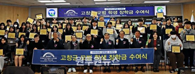 한편, 고창군은 이번 장학금 지원 외에도 지역 인재들이 안정적인 환경에서 꿈을 키울 수 있도록 다양한 교육 및 인재 육성 정책을 강화해 나갈 방침이다.