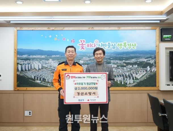 (원투원뉴스) 경산소방서는 설 명절을 맞아 2월 6일 오전 10시 50분, 경산시청에서 사회취약계층을 위한 이웃돕기 성금 전달식을 진행했다.