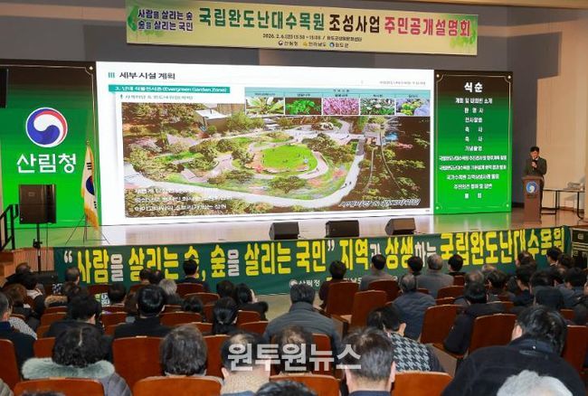 (원투원뉴스) 전라남도는 6일 완도군 생활문화센터에서 국립완도난대수목원 주민 공개설명회를 열고, 수목원 조성 추진 경과와 기본설계 내용, 지역상생 방안을 설명한 뒤 주민 의견을 직접 청취했다.