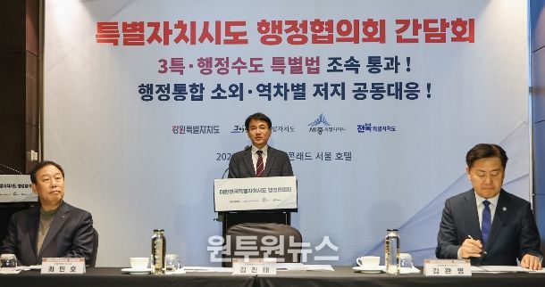 (원투원뉴스) 대한민국특별자치시도 행정협의회(대표회장 강원특별자치도지사 김진태) 시‧도지사는 2026년 2월 8일 서울 콘래드 호텔에서 긴급 회동, 간담회를 개최했다.
