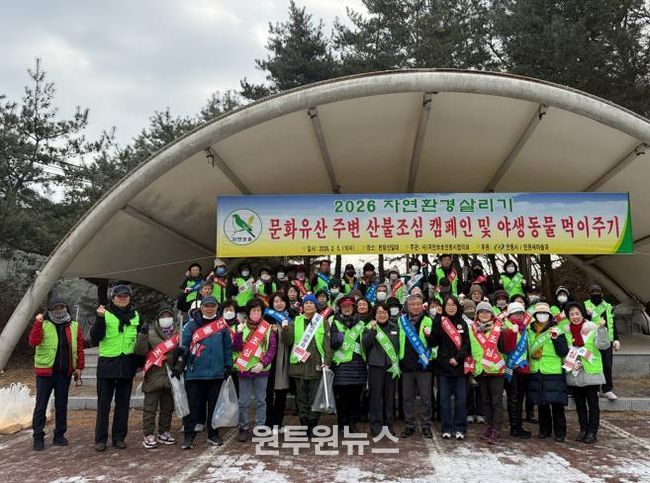 (원투원뉴스) 자연보호중앙연맹 안동시협의회는 2월 5일, 서후면 천등산 일원에서 자연보호협의회 회원 등 90여 명이 참석한 가운데 ‘2026년 자연환경 살리기 행사’를 실시했다.