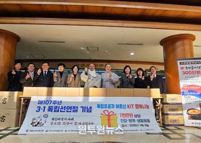 (원투원뉴스) 국가보훈부 인천보훈지청에서는 2월 9일 (사)나누며하나되기와 대한불교 천태종 관문사에서 주최한 3·1절 기념 국가유공자 행복나눔 전달식에 참석했다.