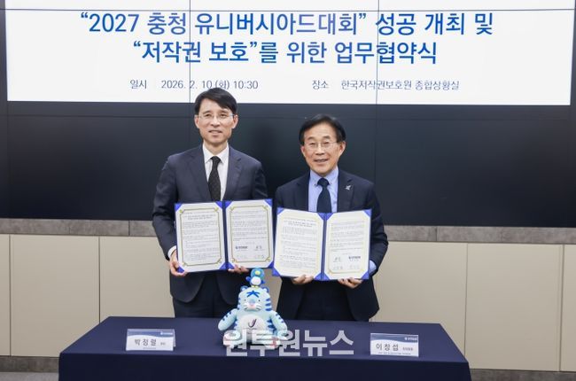 (원투원뉴스) 2027 충청 유니버시아드대회 조직위원회는 10일 서울 상암동 한국저작권보호원에서 대회 콘텐츠 저작권 보호를 위한 업무협약을 체결했다고 밝혔다.