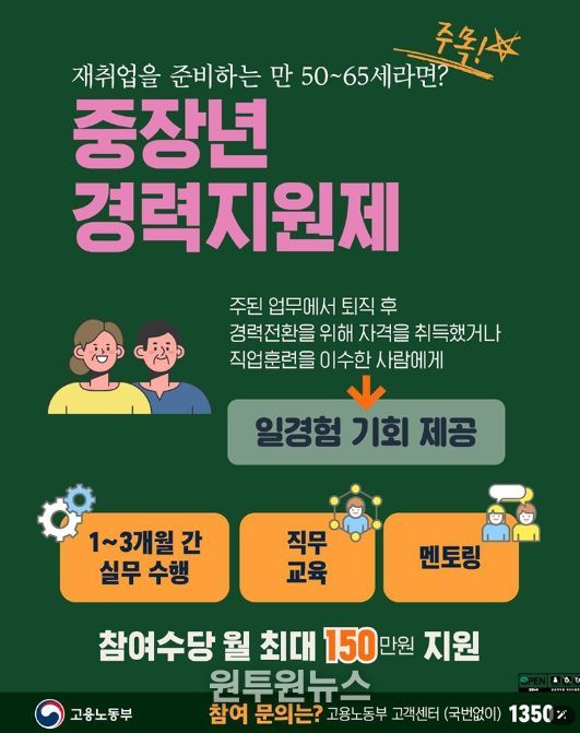 (원투원뉴스) ■ 재취업을 준비하는 만 50~65세라면? 중장년 경력지원제