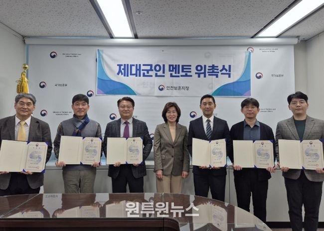 (원투원뉴스) 국가보훈부 인천보훈지청 제대군인지원센터는 2월 10일 정부인천지방합동청사에서 먼저 사회에 진출하여 성공한 제대군인을 분야별로 멘토로 선정하는 “2026년 제대군인 멘토 위촉식 및 간담회”를 진행했다.