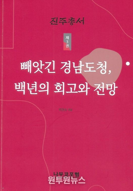 (원투원뉴스) 경상국립대학교 진주학연구센터(센터장 김덕환)와 진주의 문화예술인들로 구성된 나무코포럼(회장 박현숙)이 공동으로 ‘진주총서’ 제3권 《빼앗긴 경남도청, 백년의 회고와 전망》을 발간했다.