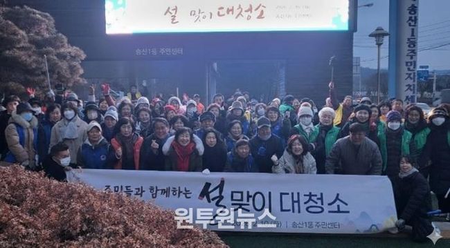 (원투원뉴스) 의정부시 송산1동주민센터는 2월 10일 다가오는 설 명절을 맞아 귀성객들에게 쾌적한 마을 환경을 제공하기 위해 ‘깨끗한 마을 만들기’ 대청소를 실시했다.