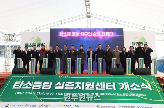 (원투원뉴스) 충남도는 11일 서산 대산석유화학단지에서 탄소중립 실증지원센터 개소식을 열고, 탄소중립 기술 실증 및 산업 전환 기반 구축을 위한 본격적인 운영에 돌입했다.
