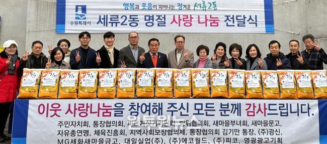 (원투원뉴스) 지난 11일, 수원시 권선구 세류2동은 설 명절을 맞이하여 사랑 나눔 전달식을 개최했다.