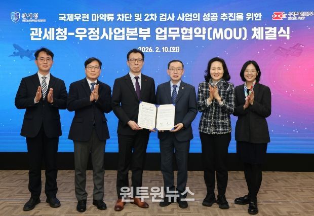(원투원뉴스) 관세청과 과학기술정보통신부 우정사업본부(본부장 직무대리 곽병진)는 2월 10일 서울세관에서 국제우편을 통한 마약류 반입을 원천 차단하기 위해 '국제우편 마약류 차단 및 2차 검사 사업의 성공 추진을 위한 업무협약(MOU)'을 체결했다.