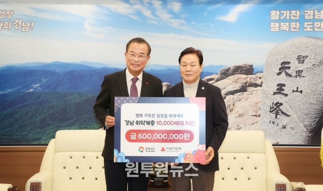 (원투원뉴스) 경상남도는 경남사회복지공동모금회(회장 강기철)가 설 명절을 앞두고 도내 어려운 이웃 지원을 위한 위문금 6억 원을 전달했다고 밝혔다.