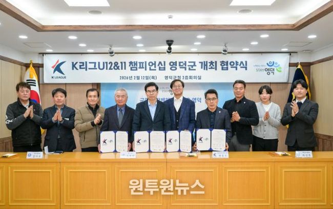 (원투원뉴스) 영덕군과 한국프로축구연맹, 영덕군체육회, 영덕군축구협회는 영덕군에서 3년간 개최되는 ‘K리그 유스(U-12&11) 챔피언십’의 성공적인 개최를 위해 지난 12일 영덕군청 제1회의실에서 협약식을 개최했다.