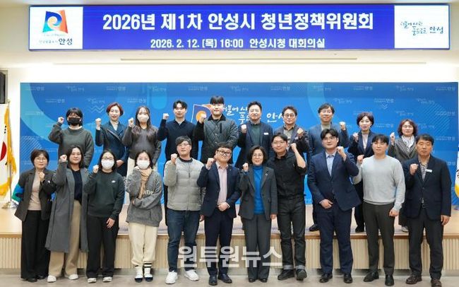 (원투원뉴스) 안성시는 2월 12일 오후 4시, 시청 4층 대회의실에서 2026년 제1차 안성시 청년정책위원회를 개최했다. 이날 회의에는 청년정책위원 20명이 참석해 '2026년 안성시 청년정책 시행계획(안)'을 심의·의결하고, 청년정책분과위원회 정책제안 검토결과와 2026년 청년정책실험실 운영방향을 논의했다.