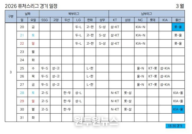 (원투원뉴스) 2026 KBO 퓨처스리그가 3월 20일(금) 개막한다.