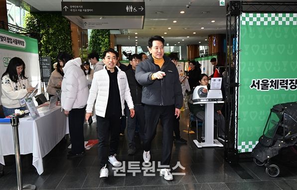 오 시장은 먼저 1층 로비에서 진행되고 있는 ‘설맞이 서울체력장 팝업’을 찾아 운영 현황을 점검한 뒤에 명절 연휴에도 근무 중인 직원들을 격려하고, 시민들이 각자 신체 여건에 맞춰 안전하게 측정할 수 있게끔 지원해 줄 것을 당부했다.