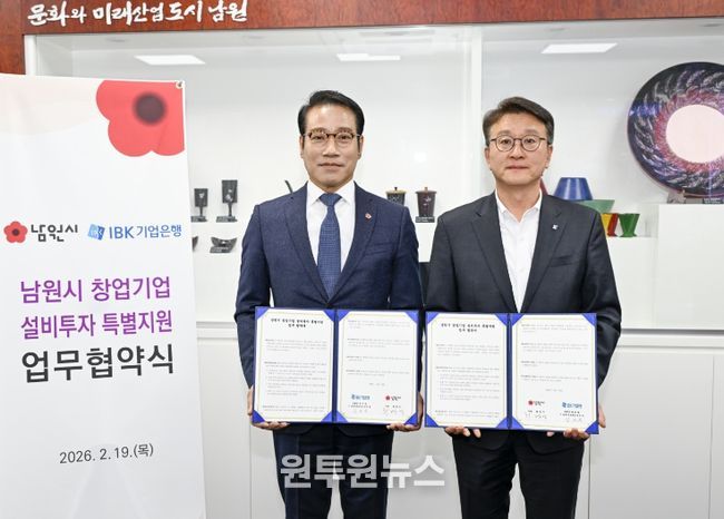 시는 2월 19일 최경식 남원시장, 김영욱 IBK기업은행 호남지역본부장, 김동훈 중소기업인회장 등이 참석한 가운데 '남원시 창업기업 설비투자 특별지원 업무협약'을 체결했다.