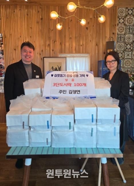 (원투원뉴스) 양평군 용문면은 지난 13일 용문면 주민 김정연 씨가 직접 만든 명절 음식으로 구성된 3단 도시락 100개를 기부하며 지역사회에 따뜻한 감동을 전했다고 밝혔다.