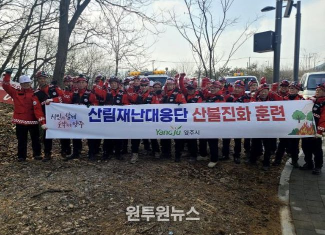 (원투원뉴스) 양주시가 최근 양주시 평화로 근린공원(경기 양주시 남방동 599)에서 봄철 산불에 대비한 현장 대응능력 강화를 위해 산림재난대응단 산불진화 훈련을 실시했다.