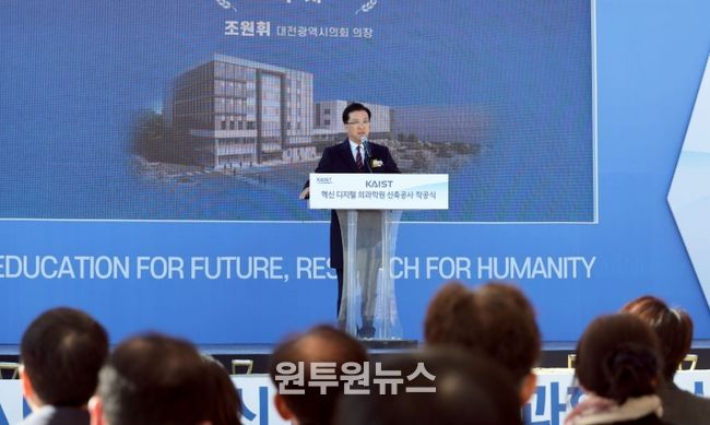 (원투원뉴스) 대전시의회 조원휘 의장은 19일 KAIST 혁신 디지털 의과학원 착공식에 참석해 첨단 의료바이오 연구 인프라 조성의 시작을 알렸다.