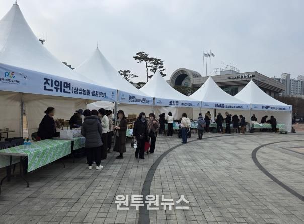 (원투원뉴스) 평택시는 지난 11일부터 13일까지 이충레포츠공원, 안중 실내체육관, 평택시청 앞 광장에서 권역별로 운영한 ‘설맞이 농특산물 직거래장터’를 성황리에 마무리했다고 밝혔다.