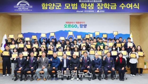 (원투원뉴스) 함양군은 20일 오후 군청 대회의실에서 귀뚜라미그룹(회장 최진민)과 함께 2026년 함양군 모범 학생 귀뚜라미 장학금 수여식을 성황리에 개최했다.