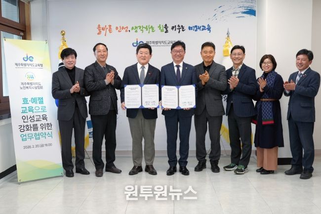(원투원뉴스) 제주특별자치도교육청은 20일 제주특별자치도노인복지시설협회와 ‘효·예절 교육으로 인성교육 강화를 위한 업무협약’을 체결했다.