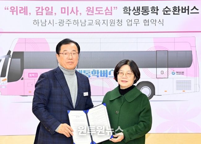 (원투원뉴스) 하남시와 경기도광주하남교육지원청은 2월 23일 ‘하남시 한정면허 학생통학 순환버스 업무협약(MOU)’을 체결했다.