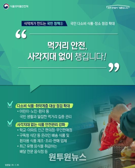 (원투원뉴스) 식약처가 만드는 국민 정책- 국민 다소비 식품·장소 점검 확대