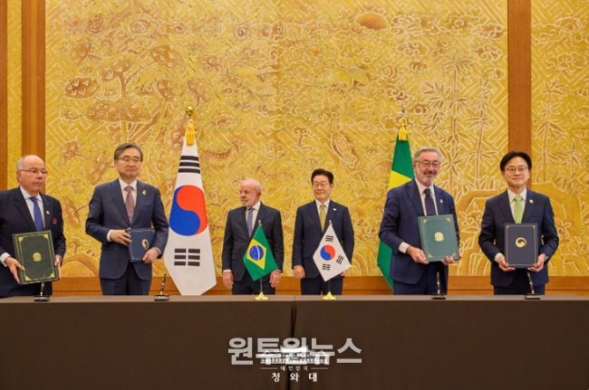 (원투원뉴스) 이재명 대통령은 23일 오전 청와대에서 국빈 방한한 루이스 이나시우 룰라 다시우바 브라질 대통령과 정상회담을 갖고 한-브라질 관계의 발전 방안과 주요 지역 정세 등에 대해 협의했다고 청와대는 밝혔다.
