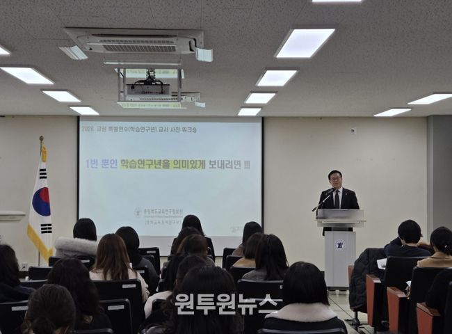 (원투원뉴스) 충청북도교육청 직속기관 교육연구정보원은 24일 교육연구정보원 세미나실에서 교원 특별연수(학습연구년)의 운영 기준을 안내하고 연수를 지원하기 위해 '2026학년도 교원 특별연수(학습연구년) 사전 워크숍'을 개최했다고 밝혔다.