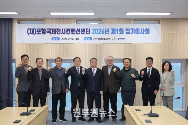 (원투원뉴스) (재)포항국제전시컨벤션센터(POEX, 대표이사 송남운)는 24일 2026년 제1회 정기이사회를 개최하고, 2026년 주요업무 추진계획을 비롯해 2025년 회계연도 결산, 2026년 제1회 추가경정예산(안), 청렴·윤리경영 관련 규정 제정 등을 심의·의결했다.