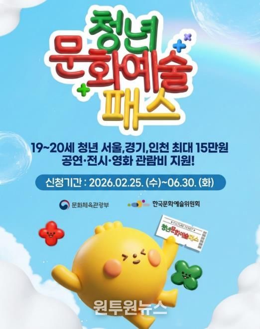 (원투원뉴스) 파주시는 2월 25일부터 관내 19~20세 청년(2006~2007년생) 3,012명을 대상으로 공연·전시·영화 관람권 예매에 사용할 수 있는 ‘청년문화예술패스’를 지원한다.