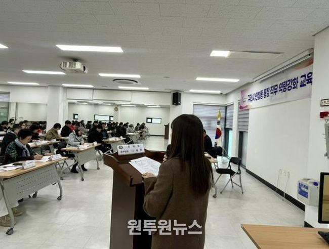 (원투원뉴스) 구리시 인창동 행정복지센터는 지난 24일 인창동 행정복지센터에서 통장 41명을 대상으로 실무역량 강화를 위한 직무교육을 했다고 밝혔다.